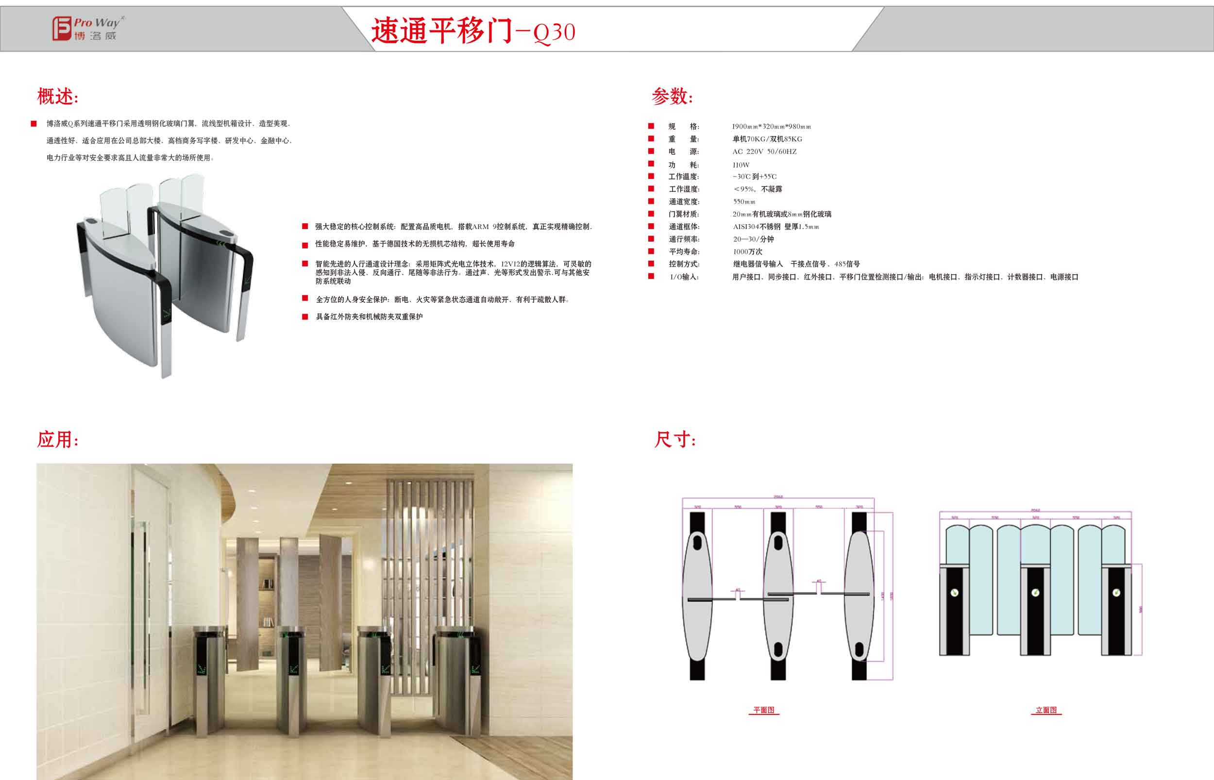 博洛威Q系列速通平移門采用透明鋼化玻璃門翼,流線型機(jī)箱設(shè)計(jì)、造型美觀、通透性好,適合應(yīng)用在公司總部大樓,高檔商務(wù)寫字樓、研發(fā)中心、金融中心、電力行業(yè)等對安全要求高且人流量非常大的場所使用